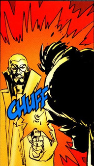 Scarlet catches up to his cyber self and they battle it out in the streets of NYC. Cyber Scarlet ends up pulling a machine gun out of thin air and fires it at Ben/Scarlet, who manages to dodge the bullets. Ben/Scarlet seemingly gets the upper hand by webbing up the imposter, but when it comes time to open the web prison he created, he discovers that there's no one in there. Meanwhile, the police and the press all begin to come down on Ben/Scarlet, believing him to be the cause of all their problems.